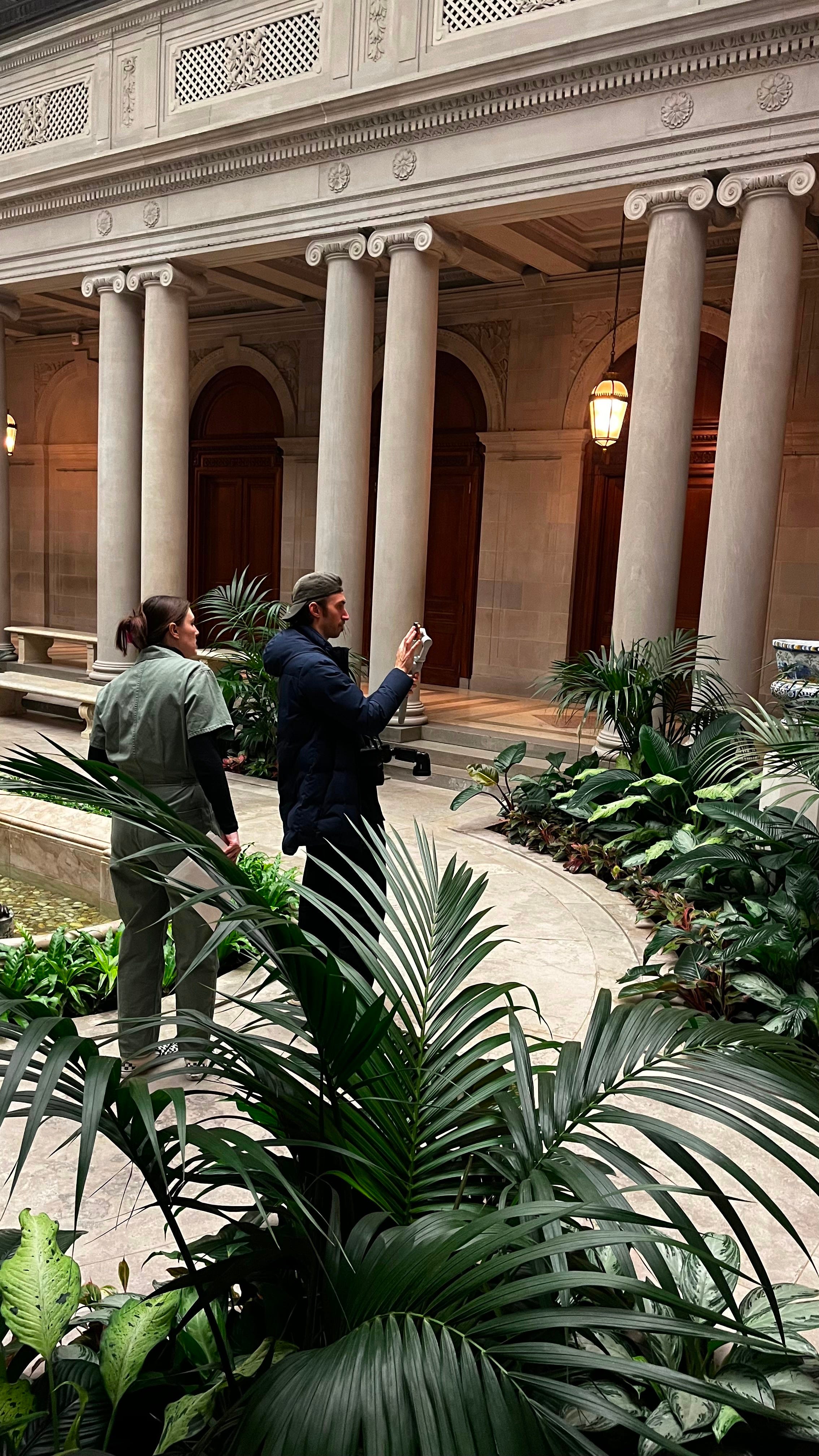 For those of you who stuck around, you get a teaser of the creative process that goes into the video project. I can’t really share anything yet, but I will say this is what I spent the majority of January working on. The flow state is happening. So so much is happening behind the scenes and will start to unfold in varying degrees of volume within the next year. What I can share is how excited I am for this video with the Frick to come out. The storyline of the video is “Travel Through Time” in conjunction with the young fellows ball at the Frick on March 12th. Here’s a shot of me directing with my DP (Director of Photography) Matt last week on set.